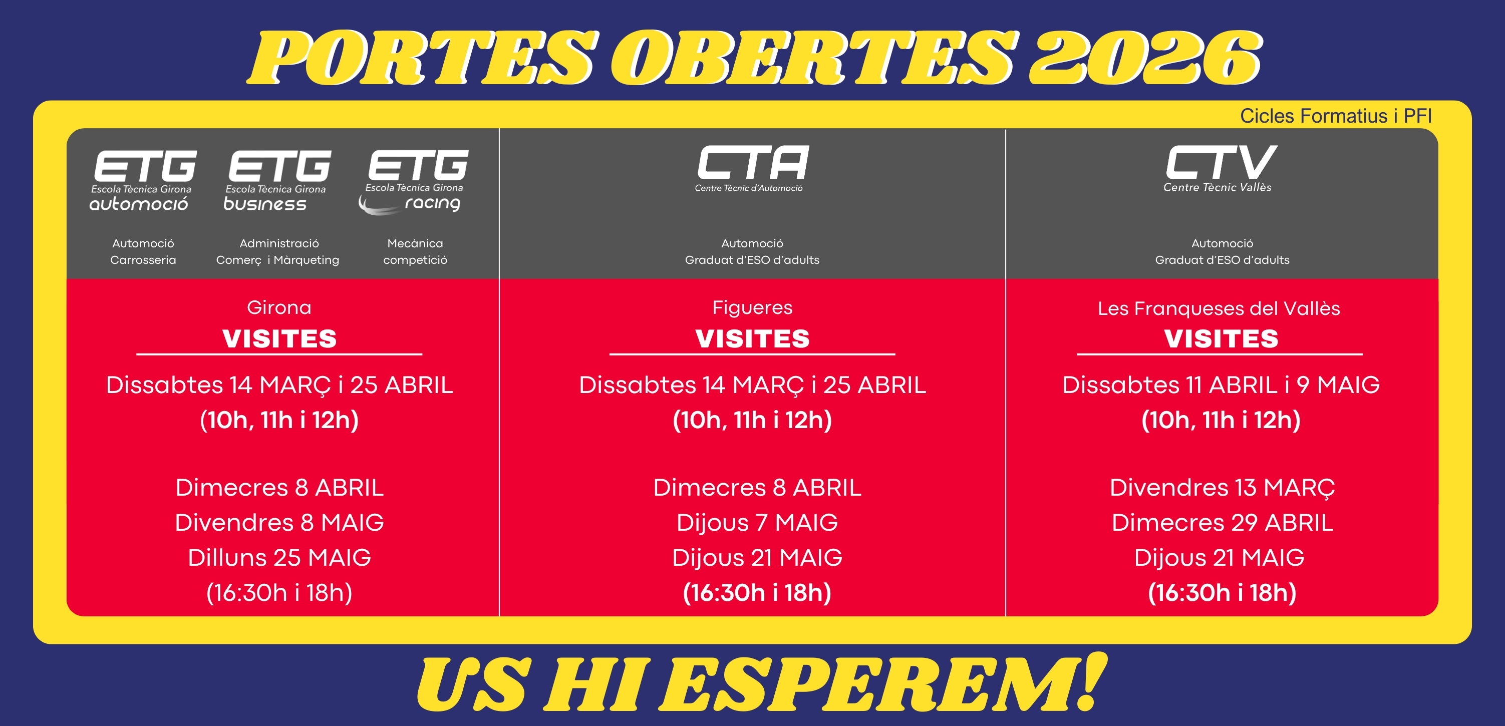 Escuela referente en formación profesional del sector automoción, tanto en ciclos formativos como para alumnos/as que no han aprovado el graduado en ESO. Conoce nuestro centro en Girona con una oferta educativa especialmente práctica, de calidad y con un trato personalizado.